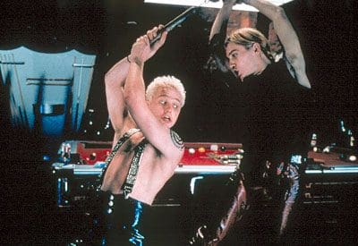 Though most of his film credits have gone unseen by the My TV team, Rhys’ work in Julie Taymor’s controversial 1999 interpretation of Shakespeare’s Titus was startling when Tim and I first saw the film a couple weeks ago. Once we realized that we were watching our beloved kind-hearted Kevin in the despicable role of Demetrius (who, alongside his brother Chiron, played by Jonathan Rhys Meyers, rapes and mames Titus’ daughter Lavinia), it took us awhile to adjust to seeing Rhys in such a different character (not to mention sporting a different accent and bleach blond hair). But Rhys’ performance is undeniably good, a highlight of the star-studded film and one of the more memorable pieces of character acting I’ve ever seen.
