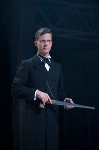 Taking another prize as a creepily morphed former-Antipholus is Sam Swainsbury, the creepiest murderer in a play full of bone-chilling murderers. What he does is use that sweet little babyface of his.