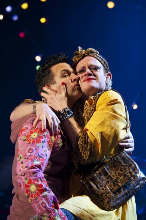 The lighter production, The Comedy of Errors, is also the lesser, if only because it’s a dramatically inferior text. Leading men Dugald Bruce-Lockhart and Sam Swainsbury tackle the Antipholi with a lot of verve and a grain of salt. Both charming, funny and fully committed to their silliness (pink pants, coiffed hair and slick smiles abound), Bruce-Lockhart (Syracuse) proves the funnier of the two though Swainsbury (Ephesus) is the more engaging. Their Dromios (Richard Frame and Jon Trenchard) also prove wonderfully fun to watch, though I can’t for the life of me remember which is which most of the time. In fact, it’s the Dromios who deliver the only bit of Comedy of Errors that I ever find particularly touching (it’s a play that is sometimes funny, rarely meaningful)- the final lines of “We came into the world like brother and brother;/And now let’s go hand in hand, not one before another” get me every time, and these Dromios grasp that little bit of sweetness and run with it beautifully.