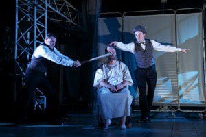 Richard III gets a similarly bold treatment, though in a very different way. Any fear that the company won’t be able to translate their broad female portrayals into dramatic performances quickly vanishes when erstwhile Dromio Jon Tenchard takes on one of Shakespeare’s most famous scenes without affectation or insecurity. As Lady Anne, he sets the tone as early as Act Two Scene One for a procession of excellent female performances to come (Dominic Tighe, oozing oddball machismo in Comedy of Errors, is the female highlight of Richard III with a subtle and engrossing performance as Queen Elizabeth).