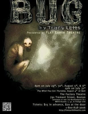 Bug has one more weekend with performances at 8PM on August 4th, 5th, and 6th at the Factory Theatre in Boston’s South End on Tremont Street.