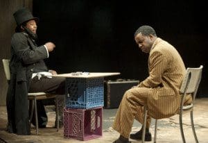 I was dreading Topdog/Underdog. I had to read Suzan-Lori Parks’ Fucking A in school and could not have despised it more. I was anticipating an angry, expletive-ridden, crass 2 hours designed to provoke response through discomfort. It’s possible that the script could read that way, but Philip Akin’s production in the Shaw Festival Studio Theatre is so much more than that.