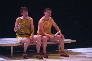 The cast, for the most part, proved exceptional. Led by John Vickery’s slightly unhinged Titus, the company fired on all cylinders. Dion Johnstone’s dangerously intelligent and imposing performance as a desperately paternal Aaron was perfectly countered by Brendan Murray and Bruce Godfree as his impish, suggestible and disgustingly vulgar pawns in villainy Chiron and Demetrius. Claire Lautier’s beauty queen Tamora left something to be desired but Amanda Lisman was the best Lavinia I’ve ever seen with a refreshingly strong take that saw the play’s most tragic victim getting deservedly pissed off instead of just beaten down. As in Richard III, however, the late Peter Donaldson’s absence was sorely felt as David Ferry’s Marcus was merely passable.