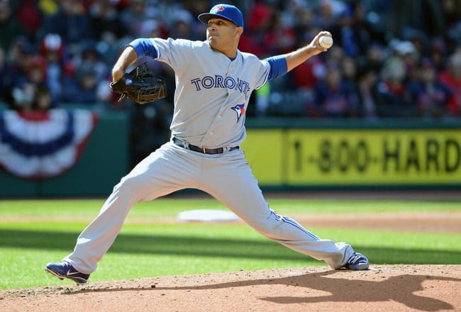 A monster double off the bat of Edwin Encarnacion brought in 2 RBI in the top of the 9th to tie it up. Starting pitcher Ricky Romero having only lasted 5 innings, the game was a taxing showcase for the Jays’ wonderfully revamped bullpen that culminated in a superb 4 inning showing from Luis Perez (that included the official win and an amusing accident where a badly-placed pitch ended up clearing the benches) and a great (not-quite-official) save by new closer Sergio Santos.