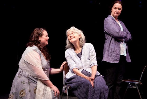 The former, a three-person memory play written and directed by big-name Canadian scribe Daniel MacIvor, has moments of poetic greatness (as all MacIvor plays do) and fails to tell a compelling story. The trio of actresses playing different iterations of the same character- Clare Coulter, Caroline Gillis and Jessica Moss- are all excellent performers who bring great life to their characters, though they seem to exist more in alternate realities than in different periods of the one Kit-Kath-Kitty’s life. Coulter, in particular, gets a lot of laughs as the eldest version Kitty, all grumpy sarcasm and cigarette-yellowed fingers. Gillis brings a lot of grounding to Kath- the middle-aged cynic- but she feels very out of touch with the both Kit and Kitty, as though Kath isn’t the bridge between them but an alternate personality who came out somewhere between optimism and acceptance. Kit is played by Jessica Moss with her usual exuberance, though I’d like to see her attempt something darker soon. Simple direction in the confining script and itty-bitty-ness of the Extra Space seems like the only choice available, but Kimberly Purtell’s lighting design, though pretty, could have helped out a lot by being just a little bit more adventurous. The execution of MacIvor’s script is acceptable if not inspired, but the principal problem is, as it often is, with the script itself. I’ve never been a MacIvor fan and have often found that the people who like him are poetry people or actors looking for a great contemporary monologue (MacIvor writes very good monologues). There’s nothing wrong with being a poetry person or an actor looking for a monologue and if that means you’re able to appreciate MacIvor’s much-lauded work, you’re the better for it. But I find that in between those poetic, fanciful monologues, there’s a bit too much meh. In MacIvor’s work there’s a whole lot of posturing, the telling of simile stories and characters revealing their great theories on the world. But those characters hardly ever do anything. I don’t need a ton of action, but I do need the verbosity to go somewhere and Was Spring stays exactly in one place.