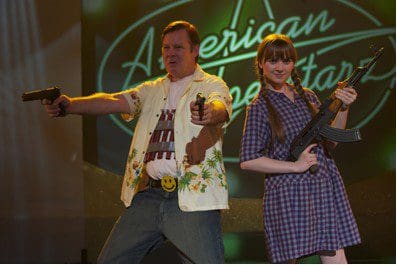 We follow a middle aged man named Frank, performed perfectly by Joel Murray (Shameless, Dharma & Greg). After learning that his ex-wife is about to remarry, Frank is fired from his job for something that seems a little too politically correct and then finds out later that same day that he has an inoperable brain tumour that will end his life sooner than later. Rather than take his own life, Frank is convinced to take his anger and frustration out on the people he thinks truly deserve to die, going on a shooting spree of reality TV stars and hateful political pundits who spread fear on their shows. Frank then finds himself the focus of an admirer and confidante in a young sixteen year old girl named Roxy (Tara Lynne Barr) who shares his hatred for how the scum of the country are put on a pedestal and worshipped by countless TV viewers. As we watch this interesting duo go on their murderous road trip, we can’t help but root for them despite the fact what they’re really doing is wrong. We understand their frustration and relish their actions as a fun fantasy that is the brainchild of a sadistic writer/director.