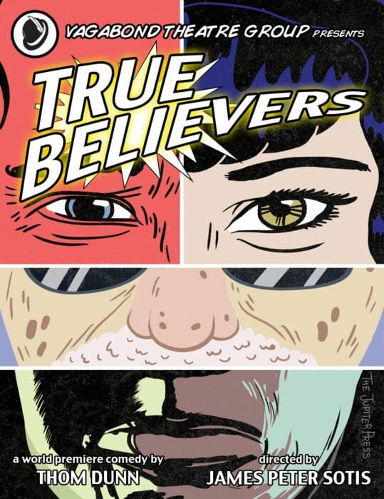I mean that title in a good way. I was impressed with this show for many reasons, but the foremost was the interesting, thoughtful story that they told extremely well. The second is that it spoke authentically to the nerd fringe community. I know, ‘nerd culture’ is the hip thing right now with comic book movies dominating the box office, but I agree with the sentiment that this newfound cash cow does not represent the community in a real way. Though it does help to normalize some nerd culture. True Believers by Thom Dunn feels like a play that intimately knows what conventions are like. As a frequenter of conventions myself, I appreciate it endlessly; Director James Peter Sotis slipped in so many shout-outs and subtle references that I caught (and plenty I’m sure I missed) that it seems clear the folks at Vagabond also know a thing or two about cons. But fear not, you need absolutely no experience with comic book conventions, or any other part of geekdom to understand the heart of this play.