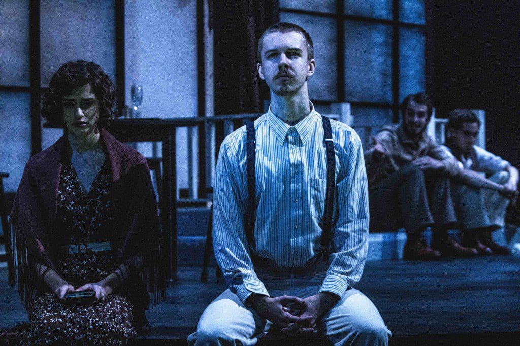 Sometimes it’s difficult to follow the endeavors and shenanigans of this large nineteen member cast. While there were many outstanding performances and Gorky’s text is full of poignant lines, I found myself constantly seeking something more: a plot twist, a stand-out speech, a change of rhythm, something. While the show was beautifully lit and the costumes capture each individual’s personality, the production needed some tightening to keep the audience from drifting away into a world of their own; the job of the actors is to draw us into theirs. The set changes are long and rickety. And the accompanying music was often too short. Throughout the second and fourth acts we can see actors on stage right make their way into the wings, beyond the cottages façade, which should be the imagined interior of Varvara and Sergei’s home. And, often times, actors move abruptly around the homes façade rather than through its entrance and I was distracted trying to think if this space was simply defined as the outdoors. And the fact that only a third of the house is used (the back sections marked off by a velvet drape) personally suggests a dismal outlook for the success of the production. Even as an obvious attempt to make the space slightly more intimate by avoiding excessive audience spread, it does not work as there is clearly still a “fourth wall.” In fact, even sitting centre, one cannot help but feel even more distant than usual with so much of the action happening upstage, something which is partially alleviated by the chasing of star-crossed lovers throughout the far audience aisles. My favourite technical aspect of the show is the strange sound of the Watchmen’s Whistle from afar, produced by a flute-like Ocarina, that causes the actors to freeze into a gaze. It happens several times throughout and allows us a much needed foray into the world of metaphor. It is in those dream-like moments that the actors seem to contemplate their actions deepest. They seem less petty and we sympathize easier with their plea towards action.