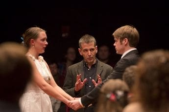 I’m going to be in the minority; I don’t like it. I had a tough time sitting down to write this review because I was uncertain how to articulate exactly how I felt walking out of the Huntington Theatre Company’s Our Town a few weeks ago. This iconic show is magical and dazzling. In my defense I was not the show’s biggest fan from an early age, mocking its simplicity, its awkward staging (honestly, who can mime churning butter and deliver anything remotely worthy of a character—Melinda Lopez and Stacy Fisher, that’s who), and its dated relevance. Fortunately, I revisited the play shortly after graduating high school and I found new depth, new character, and new charm. And I thought I was done with the play until I was called upon in my middle age to play Dr. Gibbs in a community theatre production.