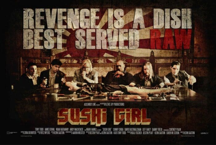 As far as casts go, it’s a combination of delight and surprise as we get to see the aforementioned Mr. Hamill nee Skywalker as the simpering Crow along with Tony Todd who skillfully plays the Machiavellian Japanophile, Duke who has brought everyone together for this special meeting and is the workhorse of this film not so much chewing scenery as rolling it in his teeth like a toothpick or cigar. Danny Trejo and Sonny Chiba both make delightful and short cameos to lend this film its gritty bona fides. The rest of the ensemble are about what you’d expect from a gritty cable cop show, not drawing too much attention to themselves but not exactly wowing. Joining Crow and Duke as the central characters are Max the hirsute biker thug (Andy Mackenzie), Francis the coked out stool-pigeon (James Duval), and Fish the bagman who just got out of prison (Noah Hathaway). Worth mentioning is Cortney Palm who plays a central if largely silent role.