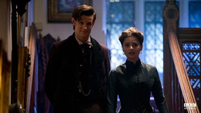 Clara is taken back into the Latimer’s house. Even though her injuries are severe (She fell from a cloud. I know Strax is using advanced alien technology on her, but how is she not dead?), the Doctor is confident Clara will live.