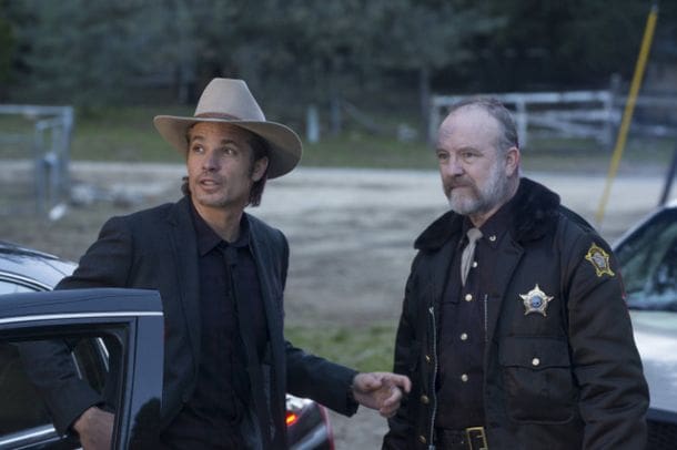The plot of the episode is fittingly straightforward: Raylan deals with his father’s death by taking control of Sheriff Hunter’s prison transfer, and thereby trying to regain control of the Drew Thompson case. Along the way, he conveniently picks up Drew Thompson himself.