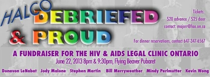 This fundraiser performance in support of The HIV & AIDS Legal Clinic Ontario– happening tomorrow night at the great Flying Beaver Pubaret– is the perfect Pride Week event if you’re looking for something fun but relatively low-key that doesn’t just entertain you but does something good for the world While it entertains you. We urge you to check it out, especially if you’re a fan of My Theatre Award nominee Mindy Perlmutter, one of the evening’s featured performers.