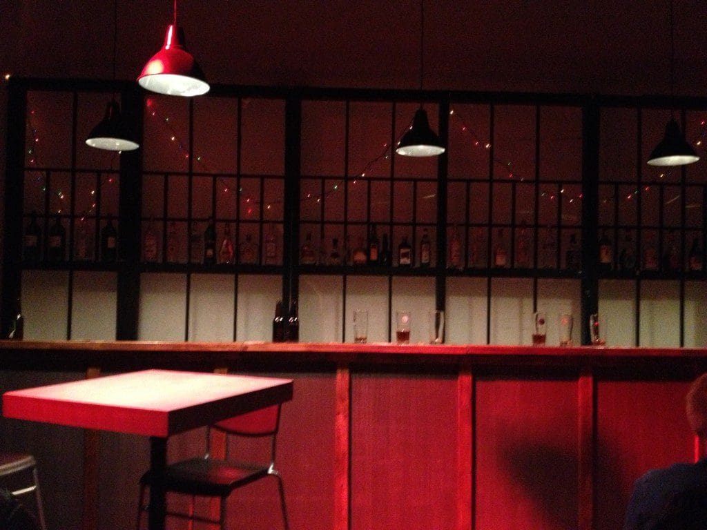 Walking into Baro Theatre’s opening night production of Danny And The Deep Blue Sea on Saturday night felt more like walking into an underground, bare-knuckle boxing match than into a theatre. The concrete floors, exposed pipe and fore stage, red-lit bar gave the theatre its gritty feel. Director Aaron Willis and his production team didn’t miss their mark in setting the scene, though; the action of Danny And The Deep Blue Sea begins like a well-hyped boxing match, the two fighters feeling each other out with quick, probing jabs and defending themselves and their egos with parries learned only through years of sparring. Within minutes, Willis deftly unfolds the world of John Patrick Shanley’s play across the set, only a few feet from the three-and-a-half rows of seats. In fact, the play encompasses even the space that is initially visible only behind the audience. That area features a bed, poorly made and set very close to the seats. The bar on one side and bedroom on the other – and the presence of only two characters, one male and one female – certainly hints at what might develop when the audience spins their own chairs to watch what happens in the second half. Like any good prize fight, though, the story is not quite unfurled until the final bell.