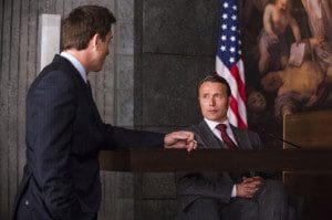 HANNIBAL — “Hassun” Episode 203 — Pictured: (l-r) Shawn Doyle as Leonard Brauer, Mads Mikkelsen as Hannibal Lecter — (Photo by: Brooke Palmer/NBC)