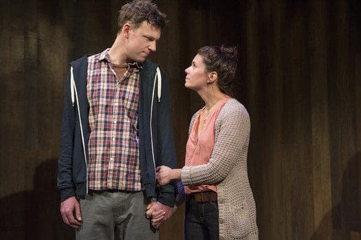 The dialogue is all at once quick, sharp, and witty as the actors effortlessly move from scene to scene without props, costume, set, or dynamic lighting changes. One might wonder if they could have done additional physical work to better signal changes, but I was delighted at the effectiveness of the simplicity, thanks to director Weyni Mengesha’s defying choices. It allowed me to really buy into the life journey of the couple consisting of M (Brendan Gall) and W (Lesley Faulkner) who eventually do conceive, loose the child, fall apart, come back together, and live happily ever after. Sorry for the spoiler but, truthfully, there is an incredible abundance of thought-provoking detail in the text, and the sheer fluidity with which it is disclosed on stage is astonishing. The narrative might be linear, but the minimalist stage, ironically, prevented its richness from being overshadowed and, thus, it felt anything but.