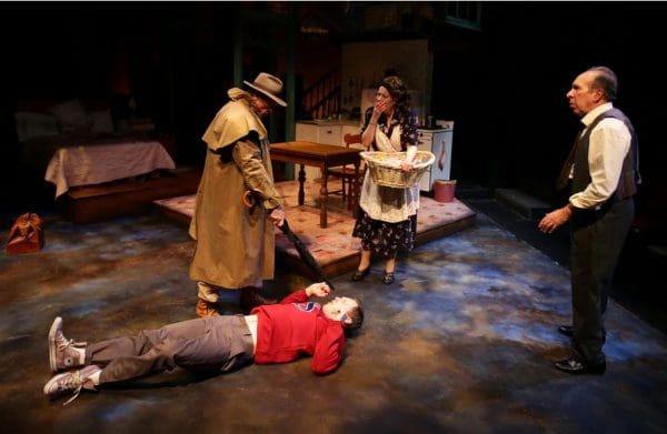 While Baltin could easily steal the show with his attention and expression of every moment of Loman’s life within his performance, his on-stage family easily matches and complements him in each moment. I have to admit that I came to the performance for the other Boston legend, Paula Plum, who plays the devoted and powerful wife, Linda Loman. Behind every great man, there is an even greater woman. Plum’s Linda is no exception. Every moment seems effortless but purposeful as she tries to keep the Loman household a functioning machine despite the many outside forces that threaten to destroy everything that she has worked so hard to preserve. Plum is a force with which to reckon. Her strongest moment, however, are her softest. The intensity bubbling underneath the surface when she can barely contain her warmth and heart for Baltin’s Willy show a woman who has chosen not only to be a housewife, but also be the structure which holds the house and its inhabitants together.
