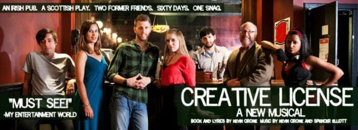 Actor, director, and now writer, Kevin Cirone has been toiling away for over two years now, working on his new musical Creative License, which premiered last weekend at The Davis Square Theater in Somerville after a lengthy development. I have to say that I was pleasantly surprised and entertained by what turned out to be a clever and, at times, exceedingly witty new musical about “art, friendships and the power of a good glass of scotch.”