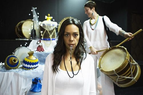 This aggressively loud, adorably exuberant music show functions mostly as an ode to the Brazilian culture and specific art form (a music/dance/drumming extravaganza), to art as a redemptive force, to community, and to the group’s leader and teacher Aline Morales. Through a series of monologues, each of the diverse members of Baque de Bamba shares their experience of discovering maracatu. In each case, the power of the music is a central feature and, for many, the embrace of the community or particular members of it is key (one of the sweetest details comes with the revelation that two of the performers met through maracatu and are married now) but what most monologizers come back to is Morales and the inspiration she gave them. Morales’ warmth and passion come through beautifully, reflected in the eyes of her pupils as they play the music she taught them and, most emotionally, in her own monologue of discovery in which she begins to tear up. Beyond Morales’ monologue- a genuinely moving theatrical moment- most of MARACATU YOU! had the same effect on me as a lot of improv comedy, which is to say that it looked like a lot of fun and I could tell it was really important and transformative for the performers to participate in their art, but as an audience member I didn’t get as much out of it as the performers seemed to.