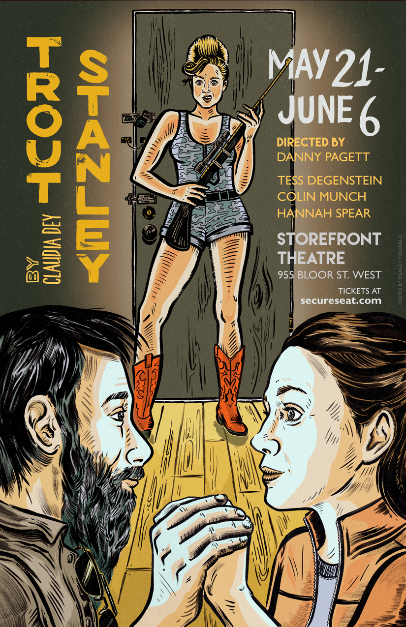 Tess Degenstein: Inspired by ADs like Julie Dumais and [Theatre Smash’s] Ashlie Corcoran, duos like The Templeton Philharmonic, as well as by an incredible surge of indie theatre in the city, we’ve been hungry to branch out and produce our own work. As we’ve both been fortunate enough to have careers as actors separately- often travelling with work for months at a time- it took a few years for our company to finally launch. But we are so thrilled (severely jazzed, in fact!) to be launching now with our inaugural production: Claudia Dey’s incredible Trout Stanley.