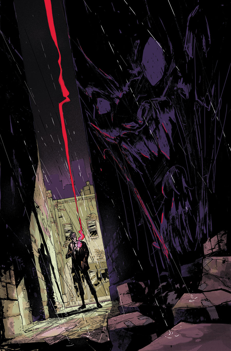 While I recognized Riley Rossmo’s art almost instantly, after reading and enjoying Rasputin, I was pleasantly surprised – and impressed – that that book’s colourist, Ivan Plascencia, is also part of the Constantine team. I wonder if it’s refreshing to paint with all the radiant colours of the infernal wind after spending a prolonged period of time in a subdued Siberian spectrum. In any event, the transition from one supernatural series to another seems to have gone off without a hitch. It all just feels right.