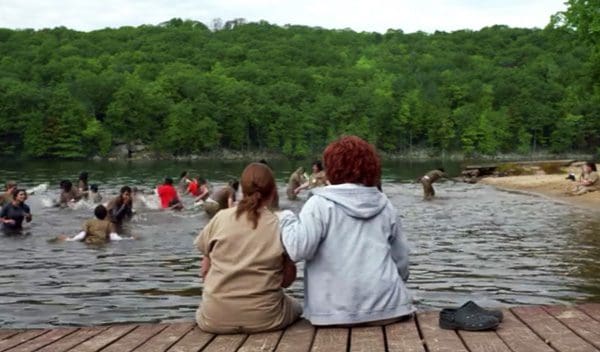 However, while they were out swimming, the inmates didn’t notice the new bunk beds being put in or all of the new inmates who were arriving. It was the perfect setup for season four.