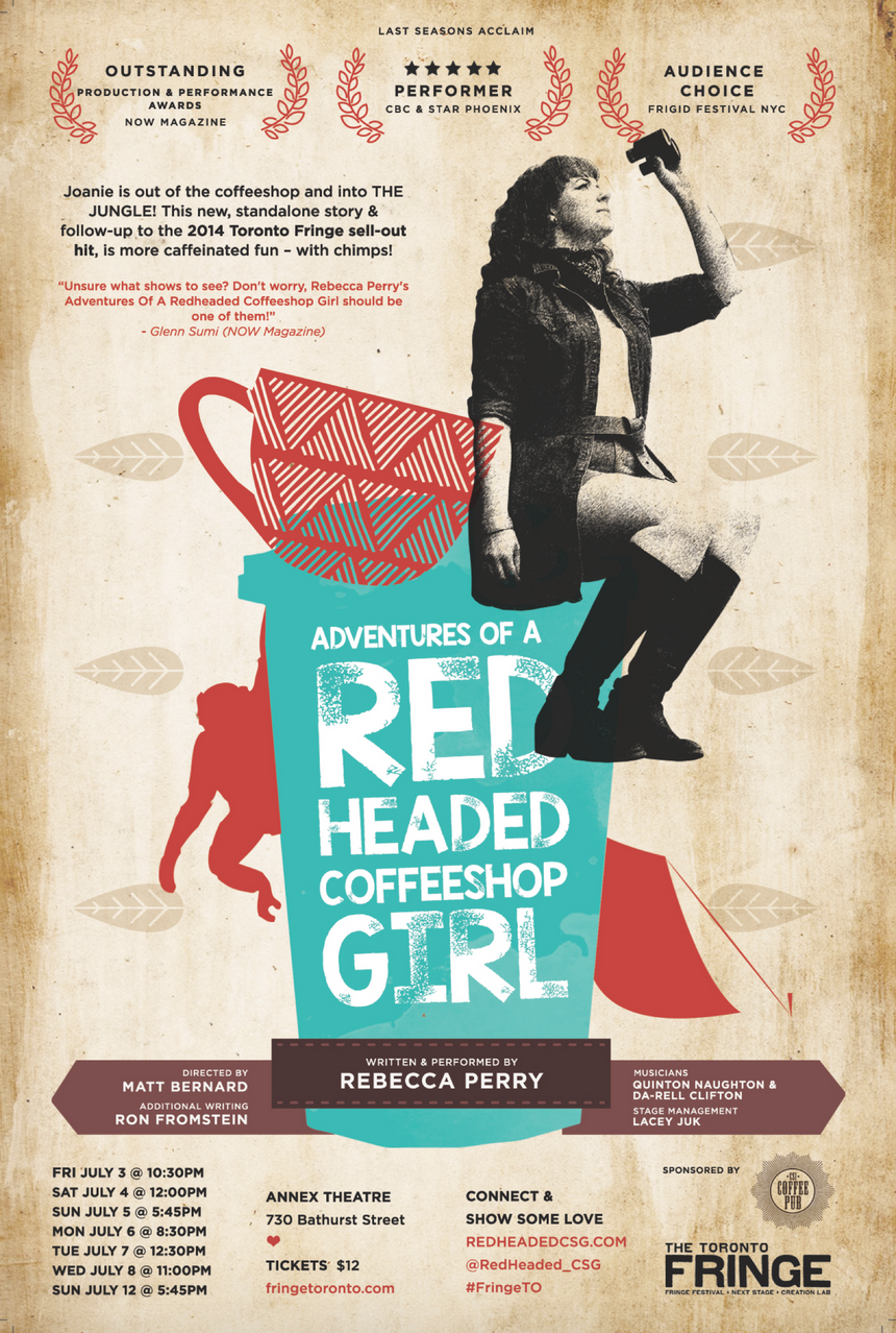 Adventures of a Redheaded Coffee Shop Girl is a follow-up to last year’s Confessions of a Redheaded Coffee Shop Girl, both written and performed by Rebecca Perry. I didn’t see Confessions last year, but I got the distinct sense it was a huge hit given how full of anticipation the audience was on opening night. This year, Perry’s fans can see her head out to the Jane Goodall Institute in Africa to pursue her dreams of becoming an anthropologist. She leaves behind Marco, her boyfriend, and heads to a camp in Africa that she will call her home for the next three months. There she encounters a myriad of characters, including a sweet Chimp named Fetch. She also runs into a host of challenges, from competitive camp-mates, heat-stroke, not to mention an angry female chimp who attacks Joanie in a fit of jealousy over Fetch. Perry is charming, and a good storyteller. Her characterization is good (though she might want to work on her Glaswegian accent before taking this production to Edinburgh) and her singing is terrific. I did wish that the songs were more obviously integrated into the story, but the music itself is sophisticated and well executed. The narrative wrapped itself up rather quickly, and the stakes of the choice she must make should have been clearer from the start for it to be a more satisfying conclusion. Definitely a fun one to catch, especially given the energy that the audience brings to the experience.