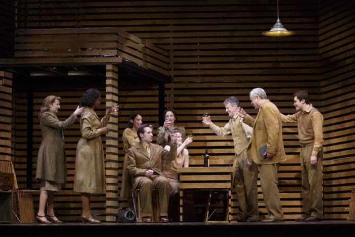 Director Jillian Keiley approaches the production as though anticipating the crowds of field trippers who filled the audience in the spring and will again in the fall. We begin with what feels like a talkback- the full (surprisingly large) cast in a line downstage, speaking directly to the audience with personal stories and information about Anne, the war and the production we’re about to see. There are many standout moments from the personal reflections but perhaps the most valuable comes from Tyrone Savage whom this introductory device places shoulder to shoulder with every other human being on the stage as he tells us with an intriguing tone of guilt and actorly empathy “I play the SS Officer”. It’s a warning sign right off the bat-that horrific ending will come barreling towards the Franks no matter how hard you wish it away- but it’s also a strangely startling reminder that the villains here aren’t anything bigger than fellow people.
