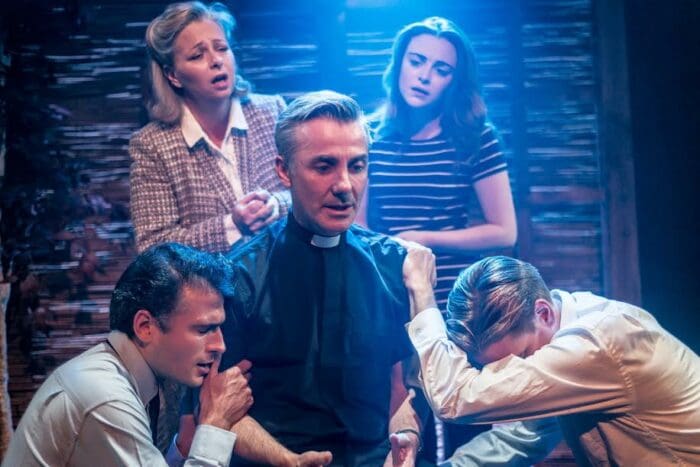 The actors each bring something to the production. While Cassie Compton’s fantastic voice and stage presence bewitches us all, it is also important to mention Sarah Ingram as both the comic relief and the wise voice of the play. Because of the different stories in each act, the play gives the audience the chance to appreciate the diverse characters. This is especially the case for Jonathan Butterell. While his role as the janitor in the first Act is well portrayed, his performance as a priest losing his faith in the second Act is remarkable.