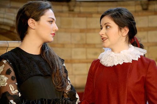 For those who wish to escape the present time and return to the Elizabethan era, Scena Mundi Theatre Company’s performance of Shakespeare’s Twelfth Night at the French Protestant Church is not to be missed. Wonderfully directed by Cecilia Dorland, combining humor, lavish costumes and the bewitching language of Shakespeare in an original venue, the evening promises to be a lovely escape from reality. Traditional music of the époque plays as the spectators walk in, allowing them to get accustomed with the tone of the piece.