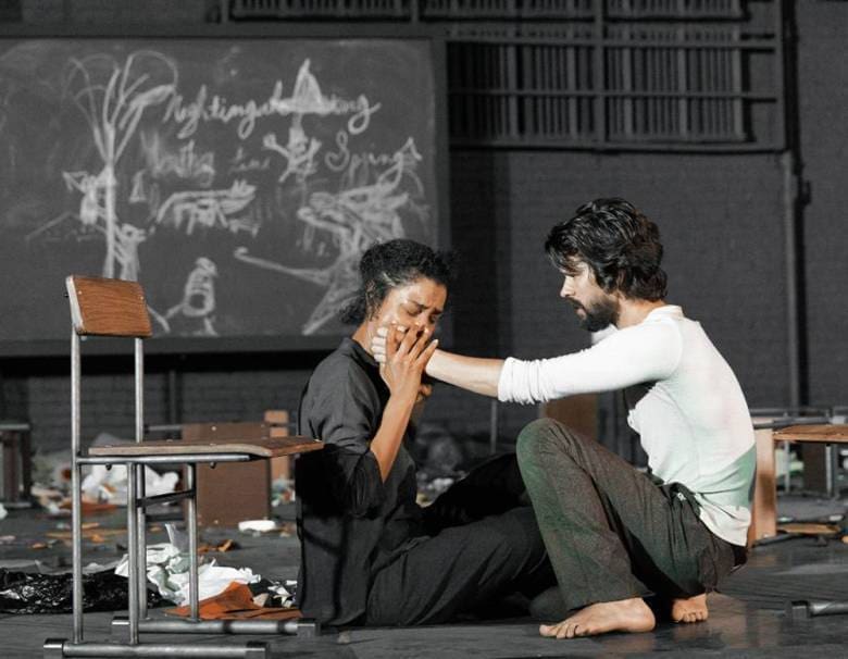 A Tamaskan dog prowls on a deserted set adorned with toppled student desks – a “wolf” relishing the eerie atmosphere (and undoubtedly sensing the unease of the audience members who missed the warning sign by the Box Office notifying them of the dog’s non-wolf lineage). Anyone familiar with director Ivo Van Hove’s recent work in Lazarus and A View from the Bridge will recognize his calling card immediately in the stark, modern set of The Crucible, awash with harsh florescent lighting. Last revived on Broadway with an acclaimed cast in 2002, Arthur Miller’s allegorical tale of McCarthyism set amid the hysteria of the Salem Witch trials in 1692 is infused with fresh life under the creative eye of Hove. Scary specters torment the living and man savages man in this reimagined production, but the horror of The Crucible does not come from these imagined spooks – rather, the true terror in Miller’s work is how often the maltreatment and hysteria present in Miller’s tale rears its ugly head again and again in our society: how very easy it is to launch a tormenting witch hunt by playing on a populace’s fear or anger.