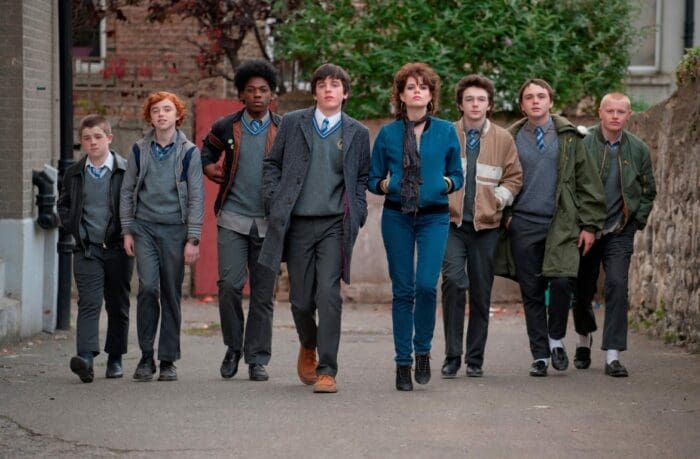 The dedication at the end of the film says “For Brothers Everywhere”, which suggests to me that this was Carney’s ode to his cool big brother who introduced him to his favourite bands. As with most things, the film would have been better off if the writer had been able to part with his sentimental ties to the story. The brother character (played as a cartoon stoner by would-be dreamy Jack Reynor) is an uninspiring, uninteresting plot mover who says lines like “I don’t do words” and steals far too much screen time from the more interesting kids around him. The character I wanted more of was Mark McKenna’s improbably talented Eamon who conveniently plays every instrument and can write a great song to work with whatever random lyrics the less talented band members come up with. He responded to the line “would you help me write a song” with a simple “always” and I instantly wanted a movie about that songwriting relationship and what it is to be the talented one who is quite notably not the leading man.
