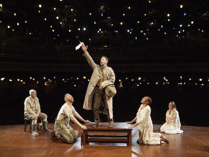 I’ve talked about this production before, focusing mainly on the problems that overwhelm the action of the first and last acts of this strangely dichotomous play. Sicilia is grey, over-dramatic, over-acted and full of unnecessary melisma but what I discovered upon a return trip (this time set against the lantern-lit Winter Garden Theatre in all its viewed-from-the-stage splendour) is that Sicilia may be as miserable as always but I could live in this Bohemia forever. As a performer, Graham Abbey shines particularly brightly in three categories: joy, charm and, most distinctly, love. He was one of the great lovers in Stratford’s history; still is, though he’s aged out of most Romeo roles. His skillset as a director is exactly the same: joy, charm, and love. These are things not called for in the parts of The Winter’s Tale that don’t work but they are top of the list for those scenes in the middle that elevate this production from dreary to delightful. As Florizel and Perdita, Charlie Gallant and Sarena Parmar make a uniquely convincing pair of young lovers. His unaffected charm (the Shaw actors all outplay the Stratford ones in my eyes, read into that what you will) and her grounded grace get much of the credit for their elevation of underwritten roles but it’s the direction of their relationship that really sells it. Abbey has them in almost constant physical contact, intertwined with carefully detailed physicality that makes their young love feel lived-in and natural. The effectiveness of Abbey’s direction extends across all of the play’s most beautiful moments, those of open heartedness and affection- how Perdita touches her mother’s hair in disbelief when she’s returned to her, the cathartic maternal embrace, Steven Sutcliffe as the Old Shepherd tenderly kissing his adopted daughter’s head as she’s returned to her true parents, the surprising sweetness with which the incandescent Brent Carver plays the thief Autolycus. The joyful and warm Bohemia is home to Mark Crawford’s heartliftingly hilarious Clown and ruled over by Patrick Galligan‘s pitch-perfect Polixenes, a performance marked with pride and nobility but easily seduced by joy and prone to tenderness (though the lack of resolution to his act four freakout is extra frustrating when his inner life is otherwise so well developed). More on this in a moment but my second look at The Winter’s Tale convinced me that Groundling (and Graham Abbey in particular) needs to be doing comedy…