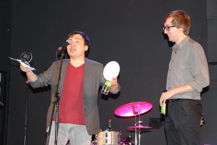 The evening’s hosts The Templeton Philharmonic (winners of the 2015 Outstanding Sketch Performance MyTheatre Award) kicked off the night with a Facebook Live pre-show as the nominees arrived, had their pictures taken by our photographer Nick Pigeau, and mingled at the cocktail party. Templeton Philharmonic started the show at 8pm with an original parody of “Downtown” then were joined by other 2015 winners and MyTheatre staff writers to present 41 awards to this year’s winners. Guests snacked on sushi and doughnuts and danced late into the night with the help of our signature band Hand-Picked Favourites.