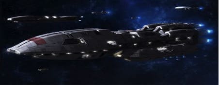 The ‘reimagined’ Battlestar Galactica is one of my favourite shows despite, or maybe because, it’s so uneven. One thing it absolutely nailed was the feel of its cold, military sci-fi world and Deadlock, a new turn-based strategy game from Slytherine Games, does a lot to ape that feeling. It’s a tragedy that BSG never got a proper game adaptation but there have been some great mods over the years and Slytherine takes some cues from the Homeworld mod Fleet Commander, as well as the FreeSpace 2 mod Beyond the Red Line, to craft a satisfyingly nostalgic tactical strategy game set during the First Cylon War, with all the taiko drums and ‘So Say We All’s you could want. The game itself plays like Fantasy Flight’s Star Wars miniatures games, where each player decides where their ships will move and how they’ll fire their weapons in secret, then all the ships on the board move at once. This creates some cool issues you don’t see in many strategy games, like collisions and friendly fire. You could definitely read your opponent wrong, zig when you should have zagged, and end up slamming one of your corvettes into a Cylon carrier. The game looks and feels a bit like a budget title, a low-res skybox being the biggest issue, and the writing and voice acting isn’t great but the nuts and bolts of the gameplay are awesome. At the end of each battle you can also watch a cinematic replay of the fight, and the AI camera does a good job of aping the look that director Michael Rymer used to such good effect in the show: cameras are bolted onto the sides of Vipers and shaky zooms as missiles impact targets all sell the homage. One thing I’m missing is the sound effects. Those bassy ‘whomps’ from the big guns are muted, even in the replay’s closeups, and you spend most of the battles listening to only music and UI sounds. As a result it’s lacking some of the punch of the show. One thing that is sorely absent is the distinct hollow sweeping sound of the DRADIS, which was a constant background feature of any scenes taking place on Galactica’s CIC. I’m interested to see what the modding community does with this, as it’s primed for higher res textures, better fidelity sounds, and some UI touches that would bring it closer to the show. I wouldn’t mind a straight conversion to Star Wars or Wing Commander, either.