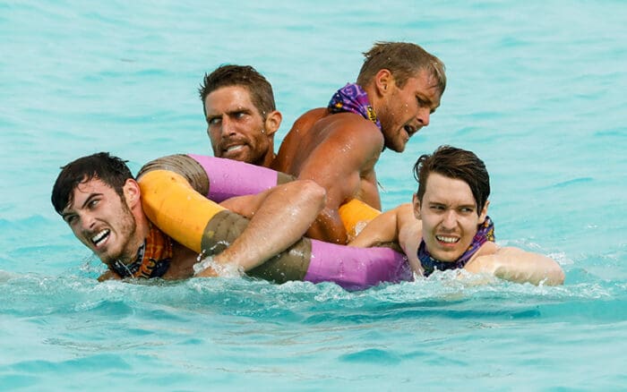 The immunity challenge is another diving challenge for my husband James to fail at. Fortunately, this one is more of a group effort, and after a difficult start for Naviti it comes down to throwing balls on top of what I can only describe as a thingy, gym teacher Brendan ruins Malolo’s lead by knocking over one of their already placed balls, and Naviti finally pulls it out.