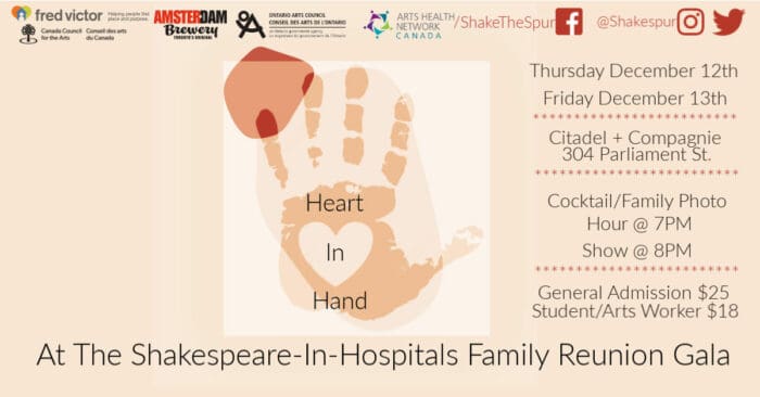 Come to our Family Reunion Gala where we celebrate and close out our season with a performance of this year’s Shakespeare-In-Hospitals Program’s new piece, Heart In Hand!