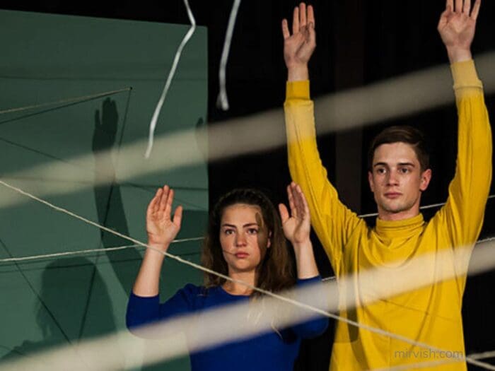 The young actors, Gytha Parmentier and Roman Van Houtven, give incredible performances. They are entirely believable as children, and their chemistry on stage as two young friends is a joy to watch. The pair also exhibit impressive stamina as they sprint and leap around the stage, like they are playing in a playground.