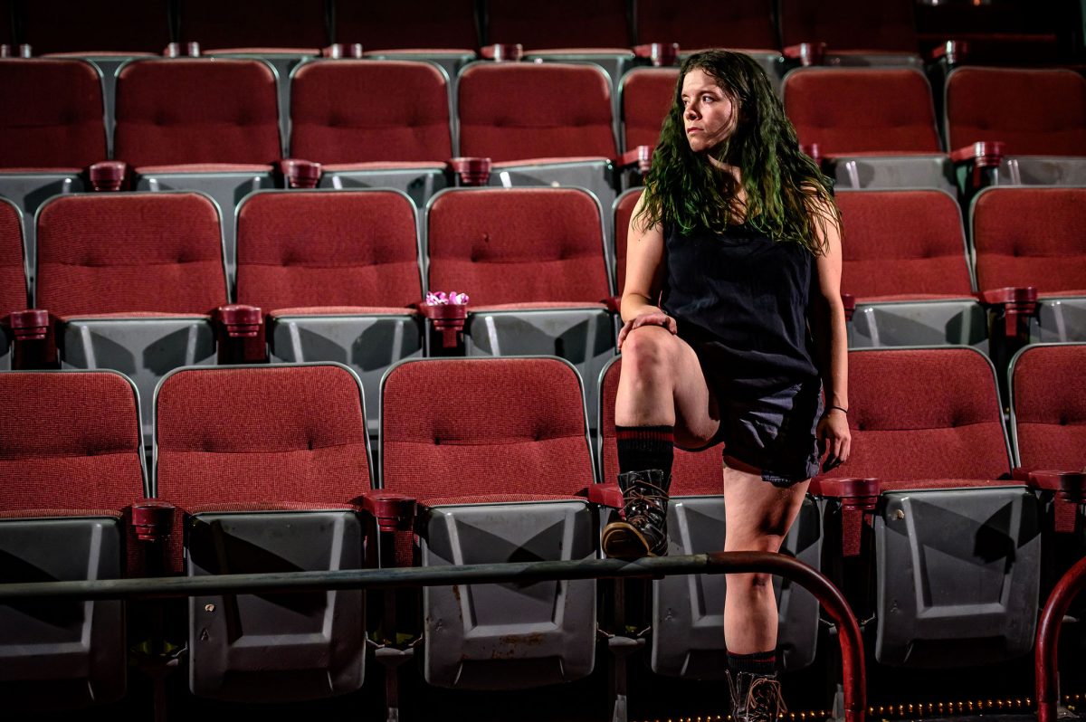 The set is deliciously simple – stairs, movie theatre seats, some garbage cans, and yeah, it allowed the characters to navigate the space and claim it as theirs. Rose is a wild child, and The Flick is her playground. When she enters, the goal is to get all eyes on her – pretty easy to do when I enter from two double doors at the top the stairs.