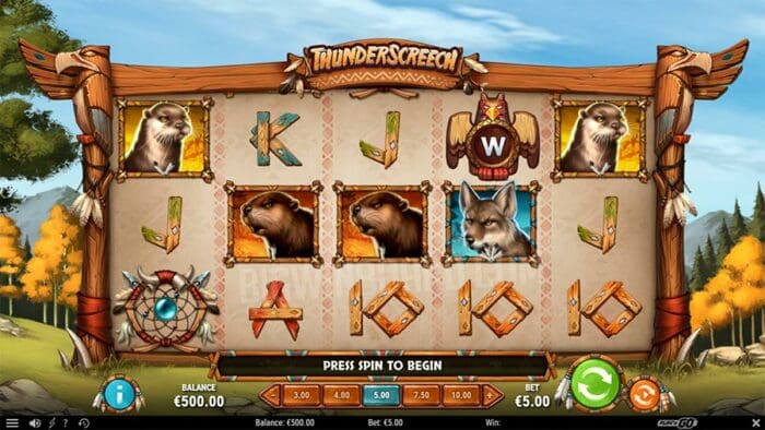 Play’n Go’s Thunder Screech Slot tours the North American outdoors with great focus on the Thunderbird. The visuals are inspired by Native American culture, including animals that were considered spiritual as characters. The wooden five by three grid sits in an open field surrounded by a green expanse while all the game controls sit at the bottom. Thunder Screech uses stakes of between 0.10 and 100 credits with which players can explore features like;