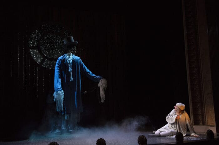 Graeme Somerville as Scrooge with Marley’s Ghost in A Christmas Carol (Shaw Festival, 2021). Photo by David Cooper.