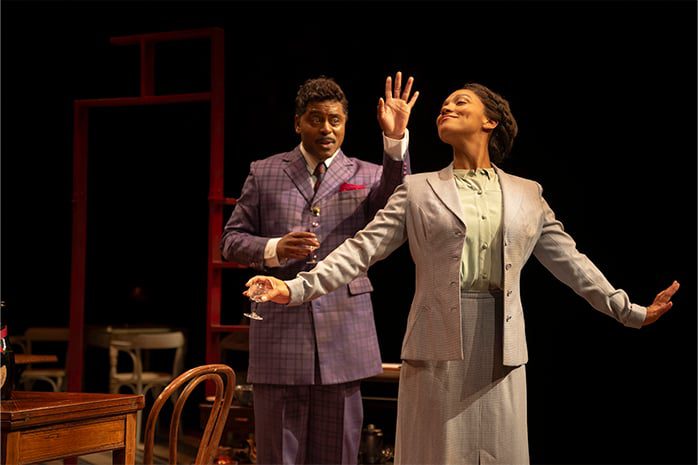 What I can weigh in on is the rest of the production, which is as steadfastly effective as can be. Directed by Associate Artistic Director Kimberley Rampersad, this perfectly cast drama showcases a compelling narrative centering Black characters within the Shaw’s limiting mandate (written in 1995 but set in 1930, this programming is a testament to the incredibly useful and relatively recent expansion allowing for modern plays written about the time period of Shaw’s life, not just plays technically written during that time). For a long time, the mandate was an excuse to overlook stories about Black people and other people of colour but the consistency with which these twentieth century tales have been the highlights of recent seasons speaks volumes about the quality of the texts available if you prioritize finding them. This script by Pearl Cleage lacks a bit of forward momentum (to be fair, pace is the first thing to falter when an understudy comes in) but it features richly drawn characters it’s impossible not to tie your heart to. The cast mostly comes from the musical company and they all make the transition excellently to the smaller style of an intimate studio piece. Anything Goes leading lady Mary Antonini skillfully dims her dazzle to believably play second fiddle while Stewart Adam McKensy hides tenderness and hurt beneath the shiniest of veneers. The incomparable Allan Louis is smooth as silk, a quality for which he is unmatched in Canadian theatre.