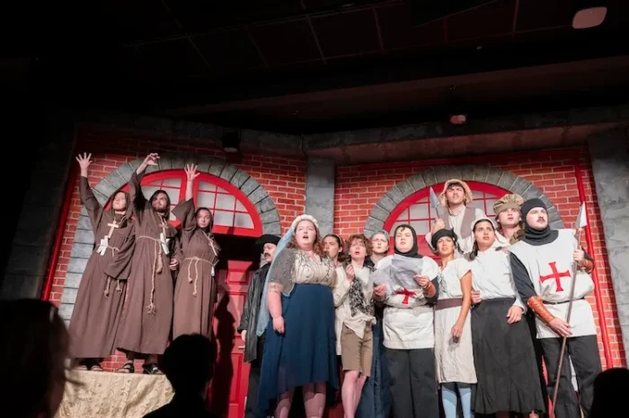 The writing is at its strongest when it takes the time to deconstruct theatrical tropes of both narration and production, such as the one-voice multi-person group, the obligatory monologue (especially ones that, let’s be honest, really go nowhere- looking at your Shakespeare), the fact that ensemble costumes come from the Temu pile while the leads get actual measurements. This calling out of tropes makes this play a rallying cry. A cry that says, there are no small parts, and every performer deserves respect regardless of their character. A meta theatrical turn about fate and playwriting does provide some eerie stakes from our ensemble but it runs the risk at times of pulling the narrative in too many different directions.