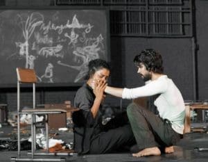 A Tamaskan dog prowls on a deserted set adorned with toppled student desks – a “wolf” relishing the eerie atmosphere (and undoubtedly sensing the unease of the audience members who missed the warning sign by the Box Office notifying them of the dog’s non-wolf lineage). Anyone familiar with director Ivo Van Hove’s recent work in […]
